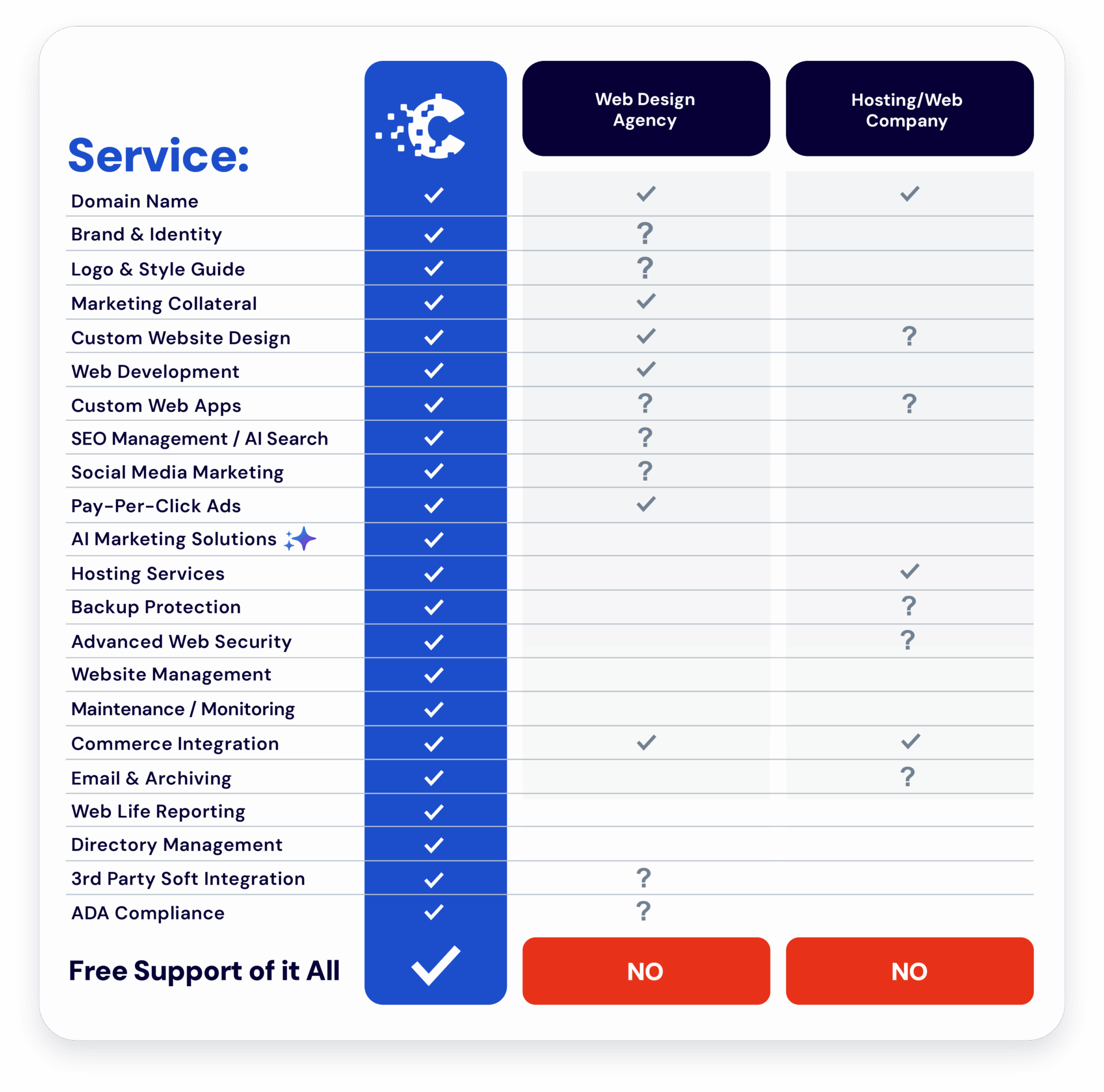 - And, supports all services with a dedicated team of support specialists, “in-house”.